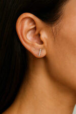 Cercei din argint Manissi Zirconia Baguette Gold placati cu aur galben de 18K, placare standard de 0.6 microni. Cerceii au lungimea de 1 cm.