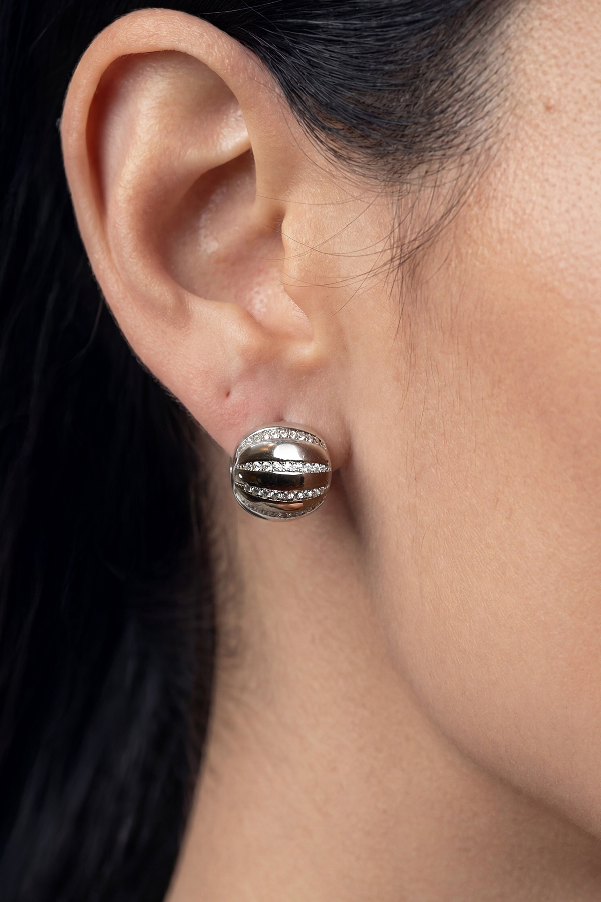 Cercei din argint Manissi Zirconia Ball placati cu rodiu, placare standard de 0.6 microni Cercei din argint 925, cu forma sferica si detalii din zirconiu. Închidere tip tortiță. Diametrul interior 0.9 mm.