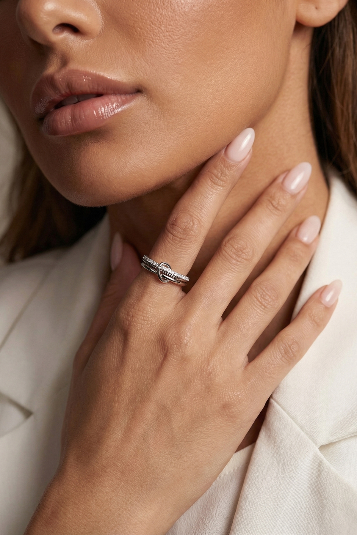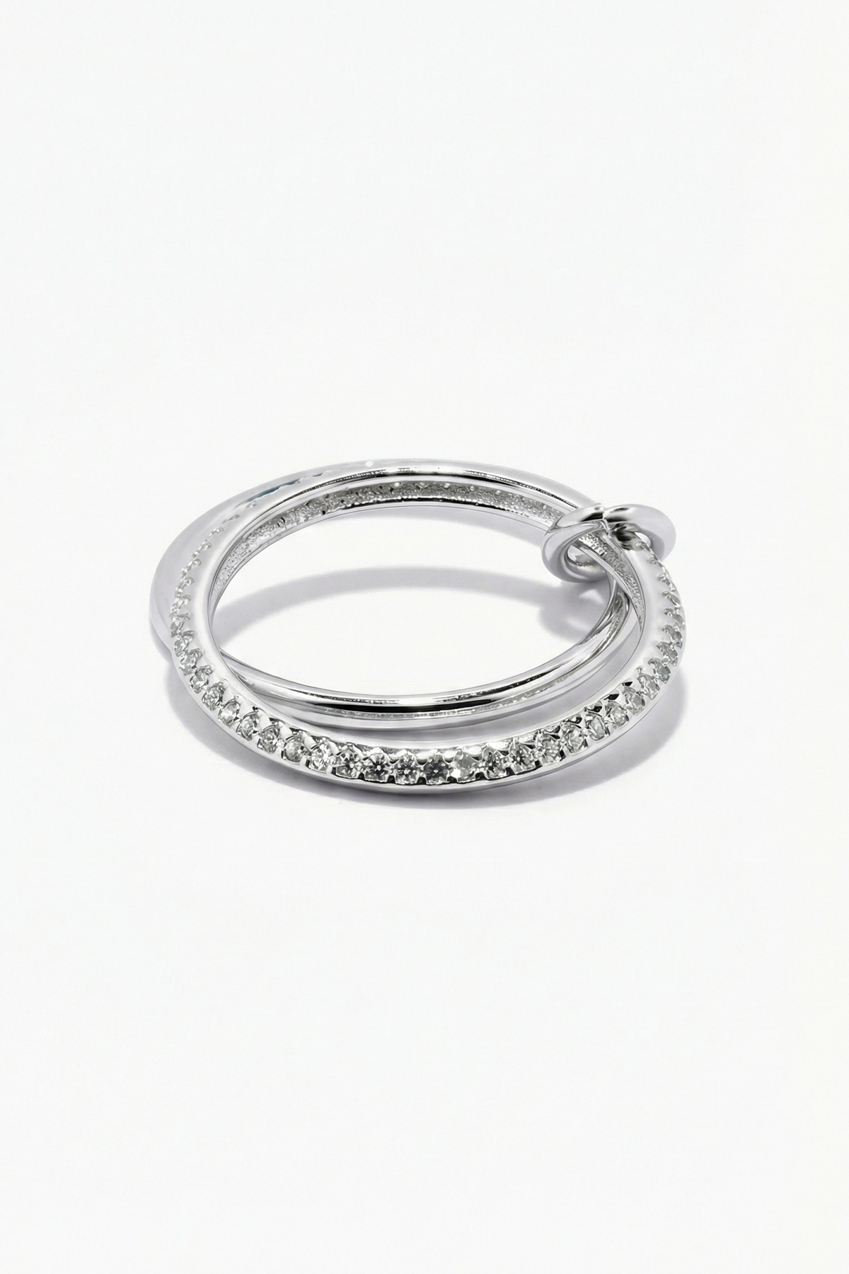 Inel din argint Manissi Two in One placat cu rodiu, placare standard de 0.6 microni. Inel dublu cu pietre zirconia.
