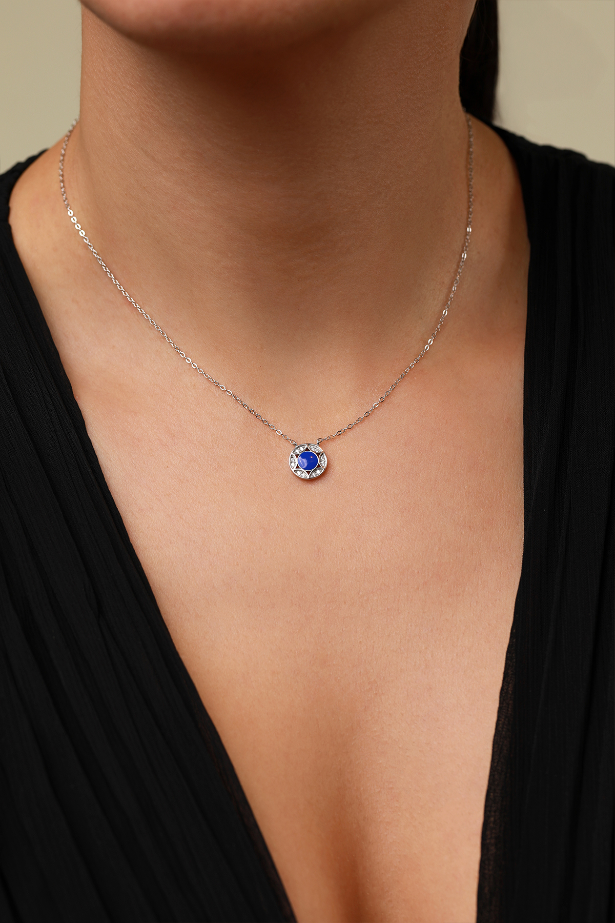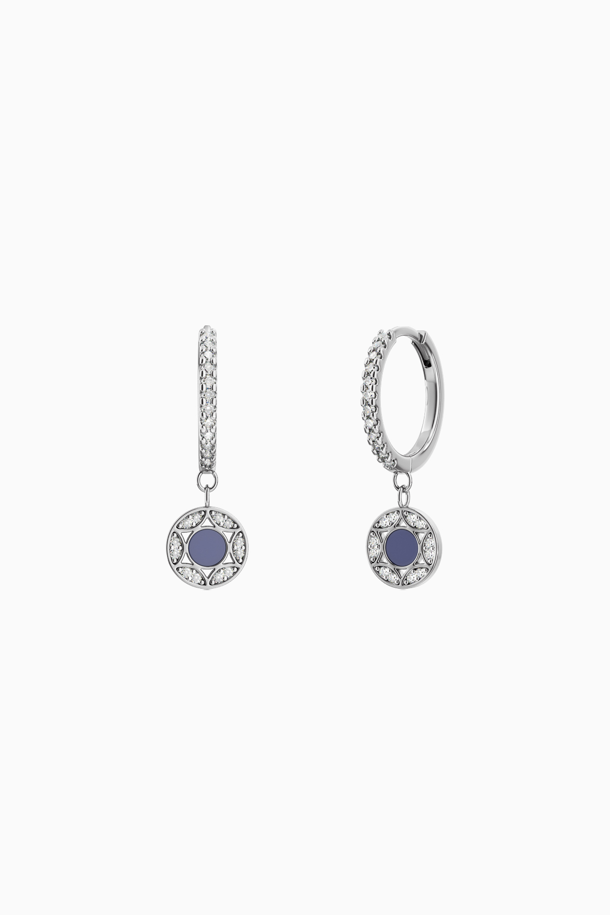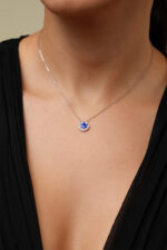 Set Lant si Cercei din argint Manissi Blue placat cu rodiu, placare standard de 0.6 microni. Lantul are pandantivul fix, lungimea de 40 de cm plus 5 cm prelungire. Cerceii au diametrul intern de 1 cm si grosimea de 1 mm. Pandantivul lantului este de 1 cm iar al cerceilor de 7 mm. Partea albastra este email.