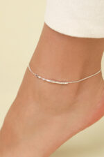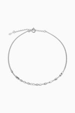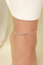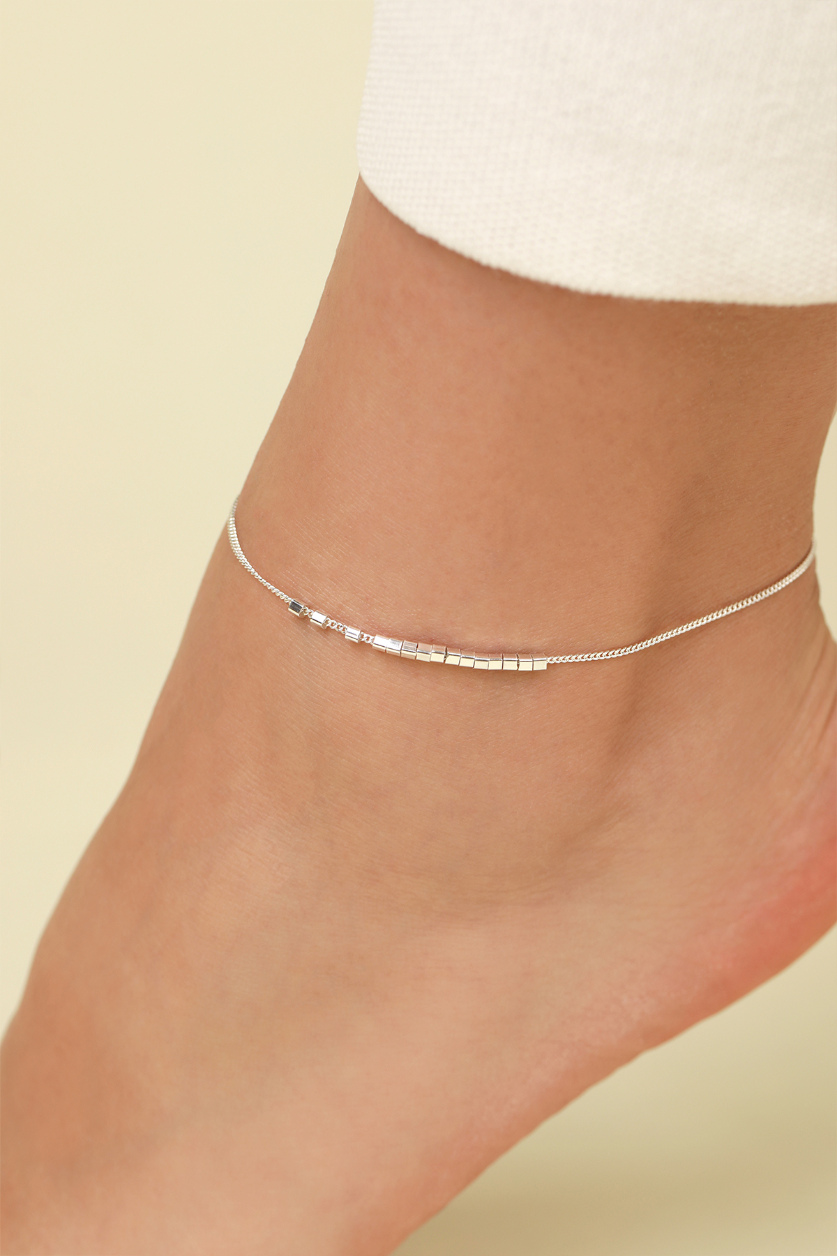 Bratara din argint de picior Manissi Move Cube placata cu rodiu. Lungimea bratarii este de 20 cm la care se adauga o prelungire din lant de 5 cm. Pe lungimea ei, bratara este prevazuta cu mici cuburi mobile.