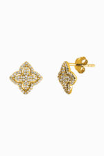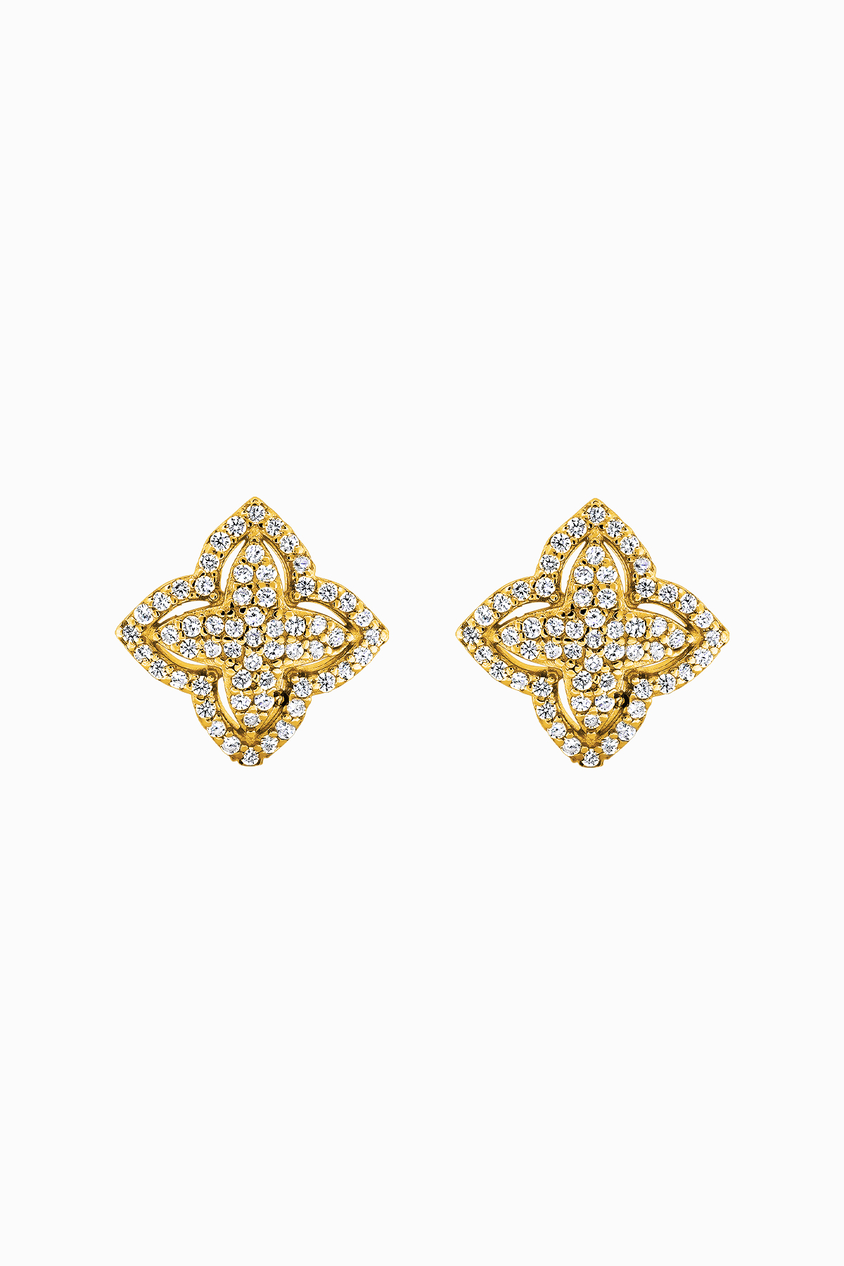 Cercei din argint Manissi Cloves I placati cu aur galebn, placare standard de 0.6 microni. Cercei stud din argint 925, în formă de trifoi compact, cu suprafață pavé din zirconii rotunde. Închidere clasică cu șurub.