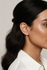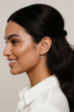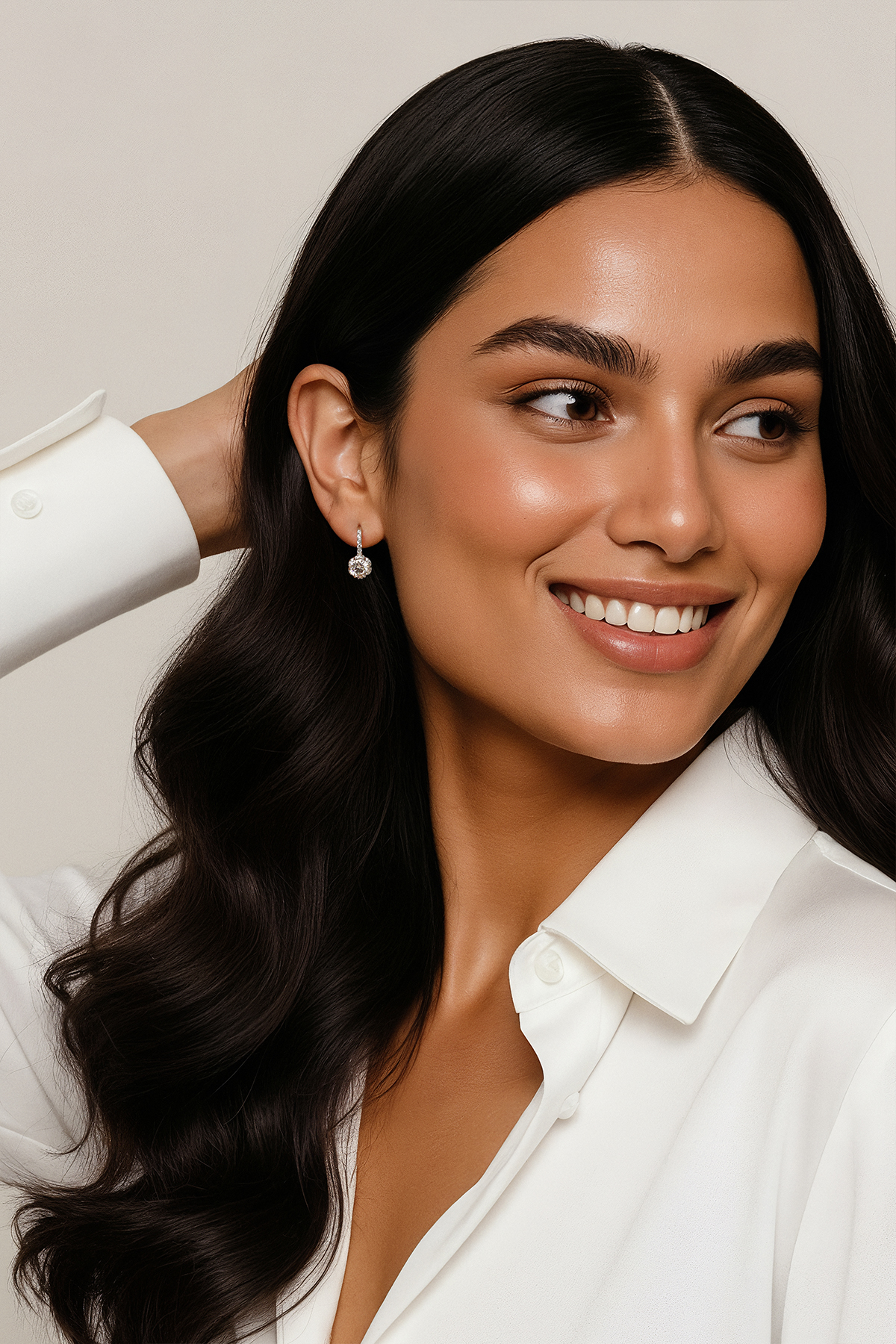 Cercei din argint Manissi Diamond Agnes Hoops placati cu platina, placare standard de 0.6 microni. Piatra este diamant moissanite de 6.5 mm, 1.00 carat, culoare D, claritate VVS1, taietura excelenta rotunda.