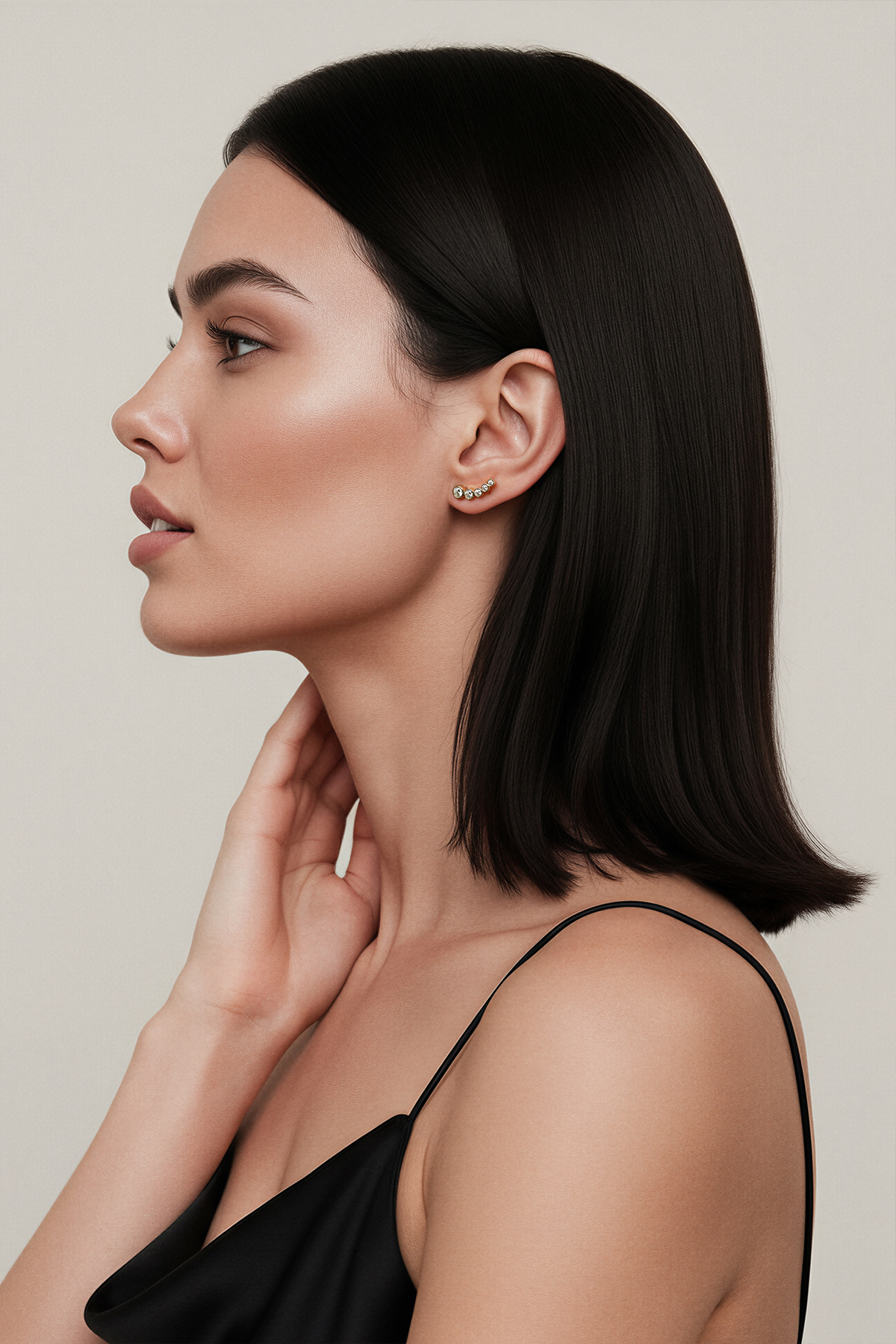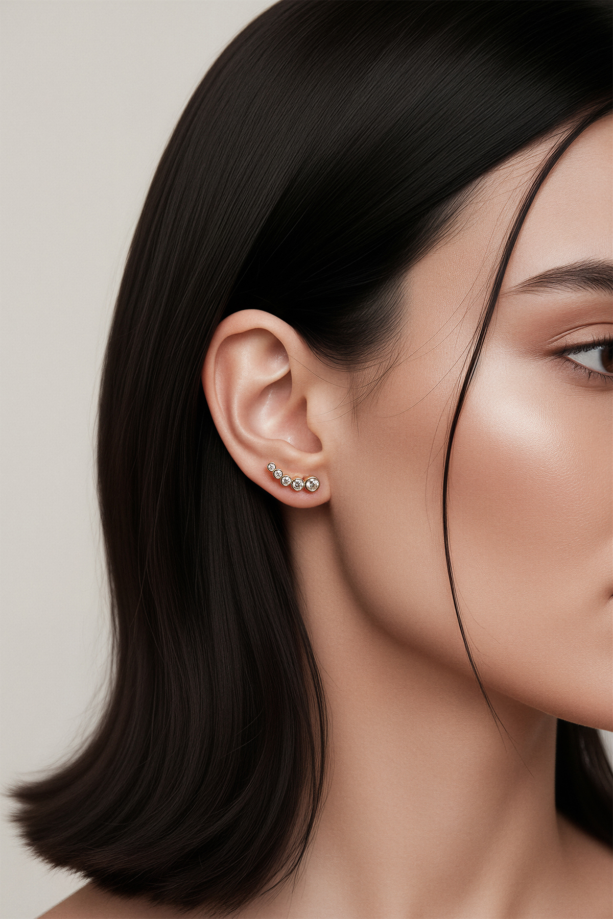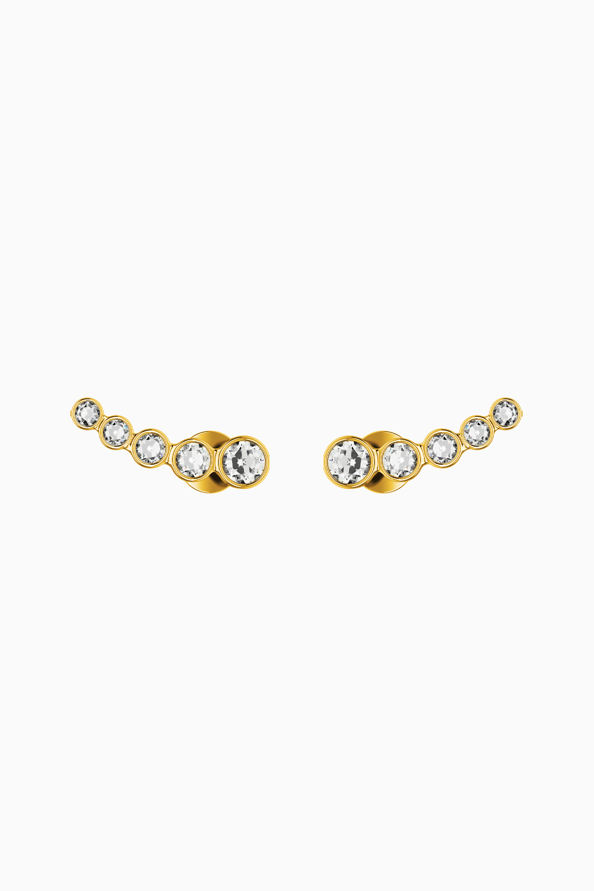 Cercei din argint Manissi Diamond Angel Gold placati cu aur galben de 18K, placare standard de 0.6 microni. Cerceii aulungimea de 1.5 cm pietrele Moissanite sunt de diferite dimensiuni, piatra cea mare este de 3.5 mm cu 0.2 ct, culoare D, claritate VVS1, taietura excelenta.