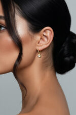 Cercei din argint Manissi Diamond Charm Oval Hoop Gold placati cu aur galben de 18K, placare standard de 0.6 microni. Dimensiunea cercelului interior este de 9 mm cu 6 mm. Pietrele mici sunt zirconii.