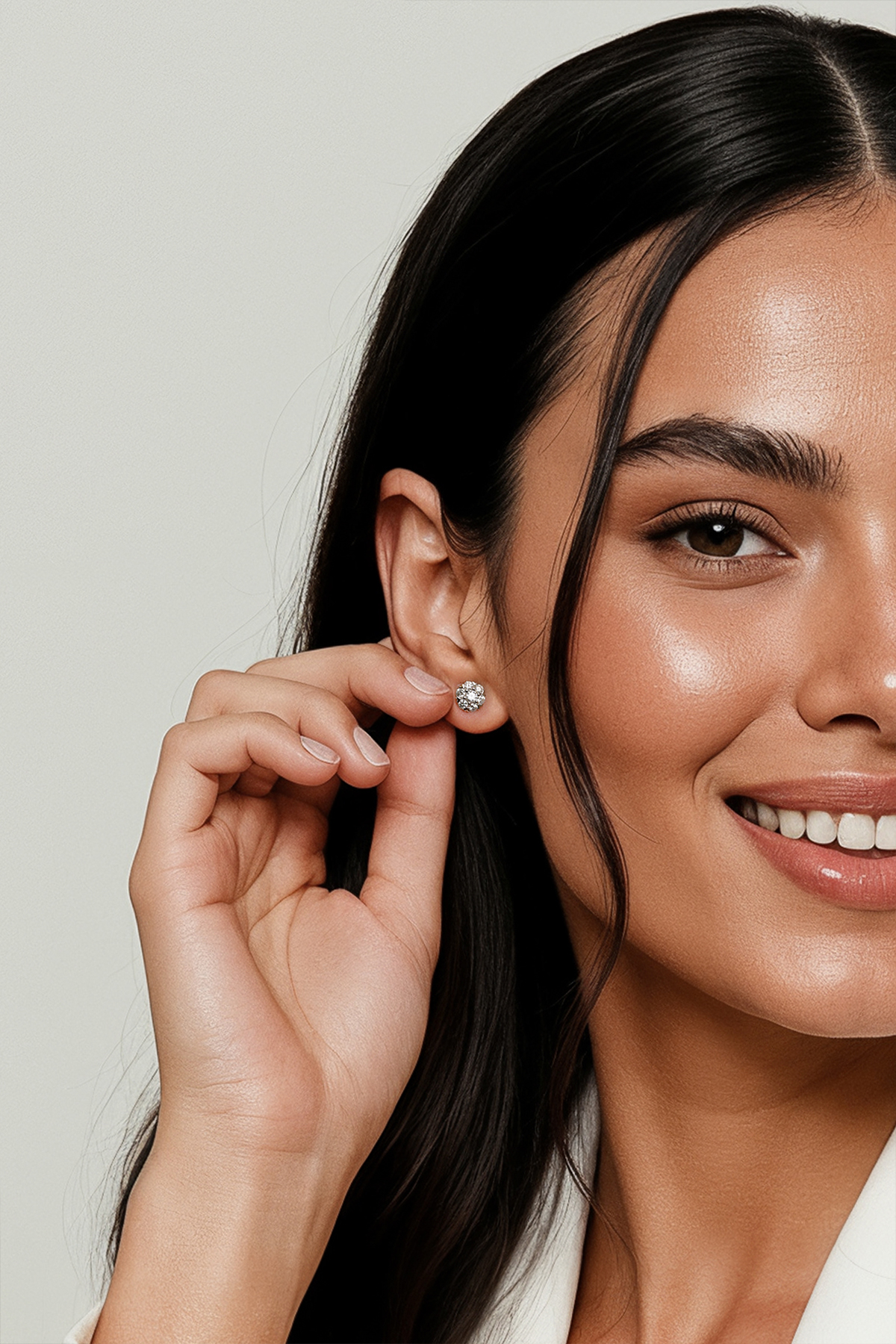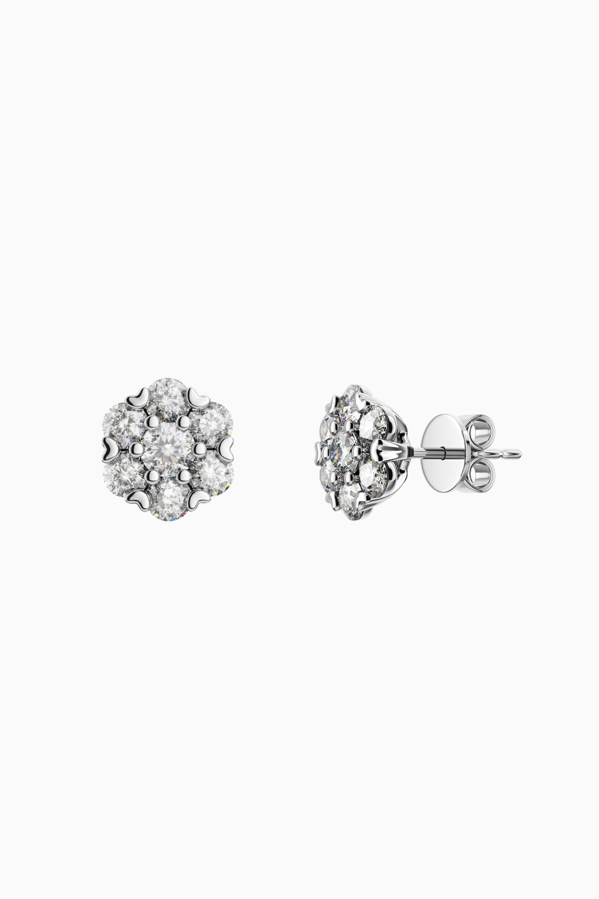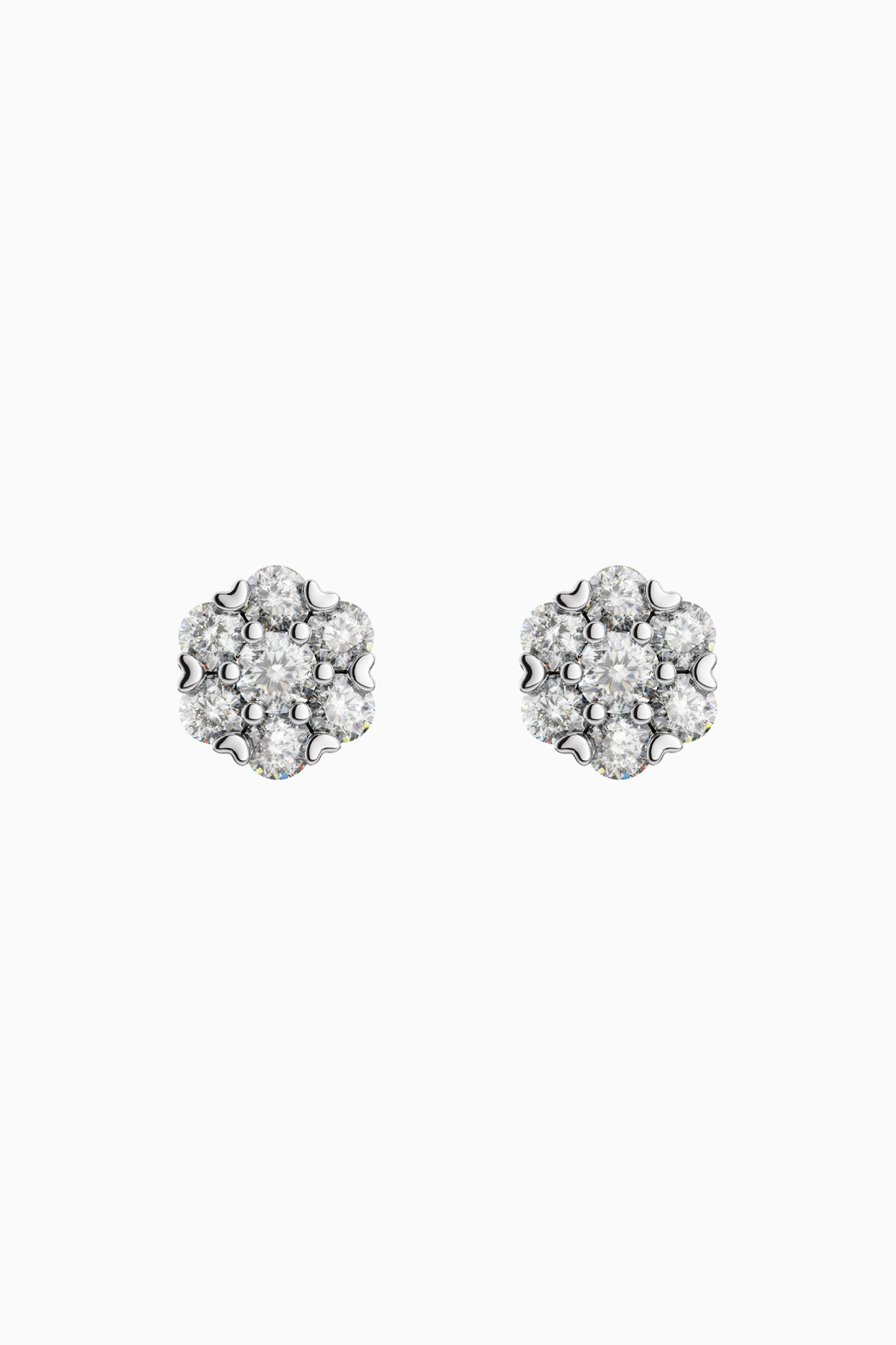 Cercei din argint Manissi Diamond Estella 2 mm placati cu aur alb de 18K, placare standard de 0.6 microni, diametru 2,5 cm. Piatra este diamant moissanite de 2 mm, 0.03 carate per piatra, culoare D, claritate VVS1, taietura excelenta rotunda. Cerceii au diametrul floarei de 6 mm.