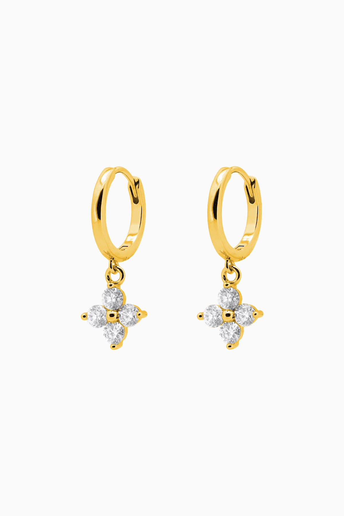 Cercei din argint Manissi Diamond Four Leaf Charm Gold