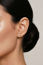 Cercei din argint Manissi Diamond Four Stones Small placati cu platina, placare standard de 0.6 microni. Piatra este diamant moissanite de 1,9 mm, 0.027 carate, culoare D, claritate VVS1, taietura excelenta rotunda.