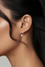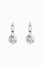 Cercei din argint Manissi Diamond Moissanite Fix placati cu platina, placare standard de 0.6 microni. Diametrul intern al cerceilor este de 1 cm iar inaltimea este de 1.6 cm. Piatra este diamant moissanite de 6.5 mm, 1.00 carat, culoare D, claritate VVS1, taietura excelenta rotunda.