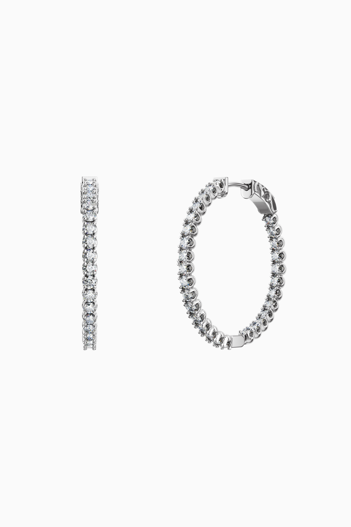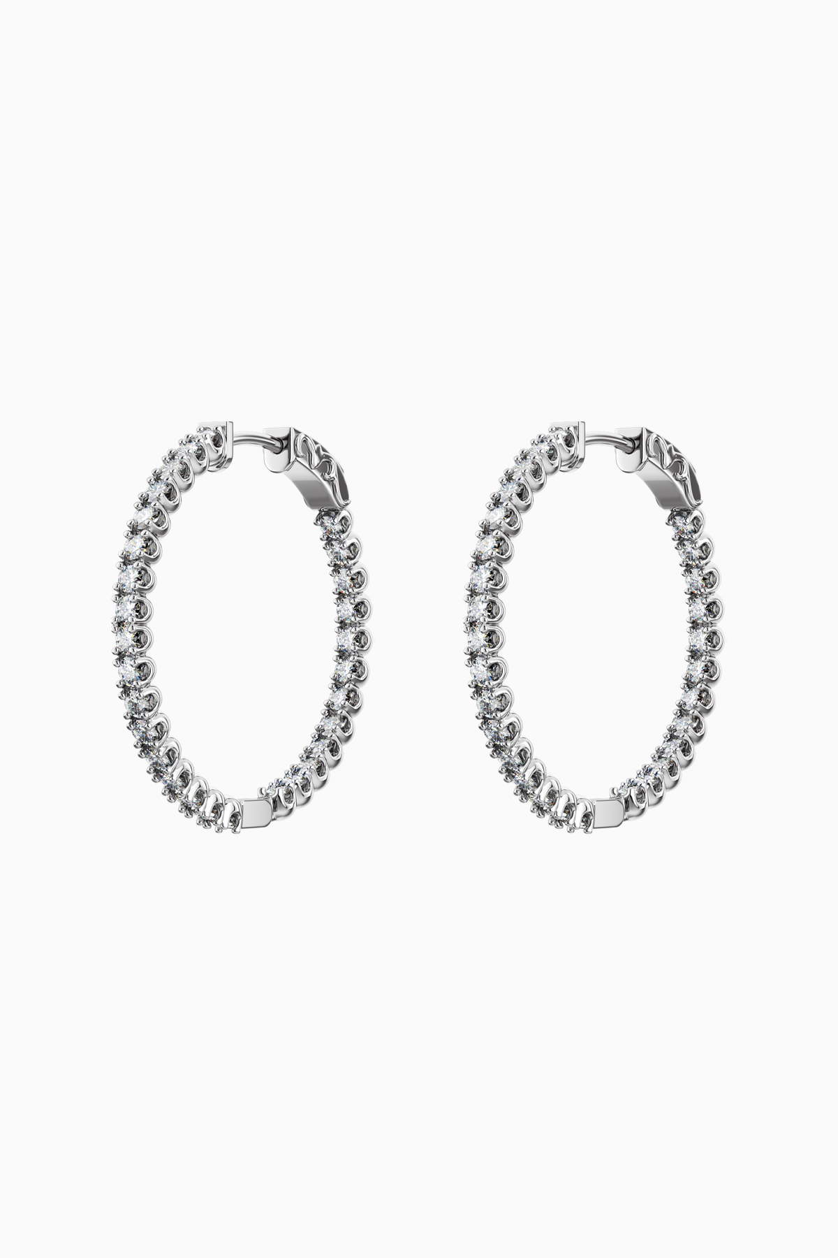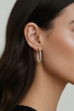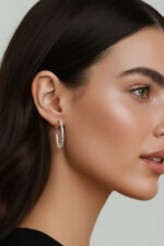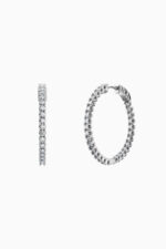 Cercei din argint Manissi Diamond Round 2 mm placati cu aur alb de 18K, placare standard de 0.6 microni, diametru 2,5 cm. Cerceii au si un strat protector pe suprafata pentru a preveni amprentele, cresterea rezistentei la zgarieturile fine, cresterea protectiei impotriva oxidarii. Piatra este diamant moissanite de 2 mm, 0.03 carate per piatra, culoare D, claritate VVS1, taietura excelenta rotunda. Cerceii au diametrul intern de 2.5 cm.