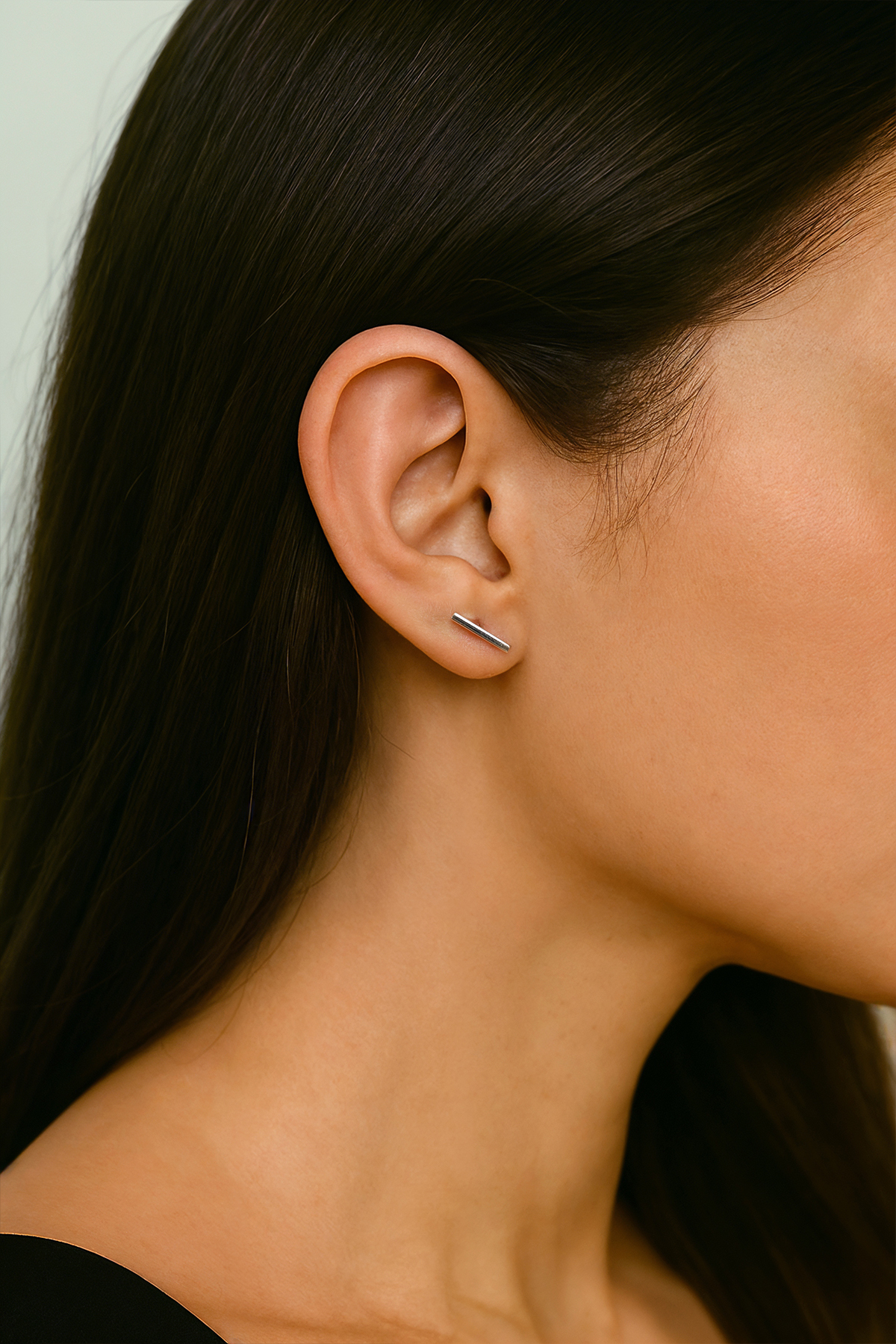 Cercei din argint 925 Manissi Line. Cerceii au lungimea tijei patrate de 1 cm, lungimea tijei care intra in ureche de 0.9 cm iar diametrul bilutei de prindere de 3 mm.