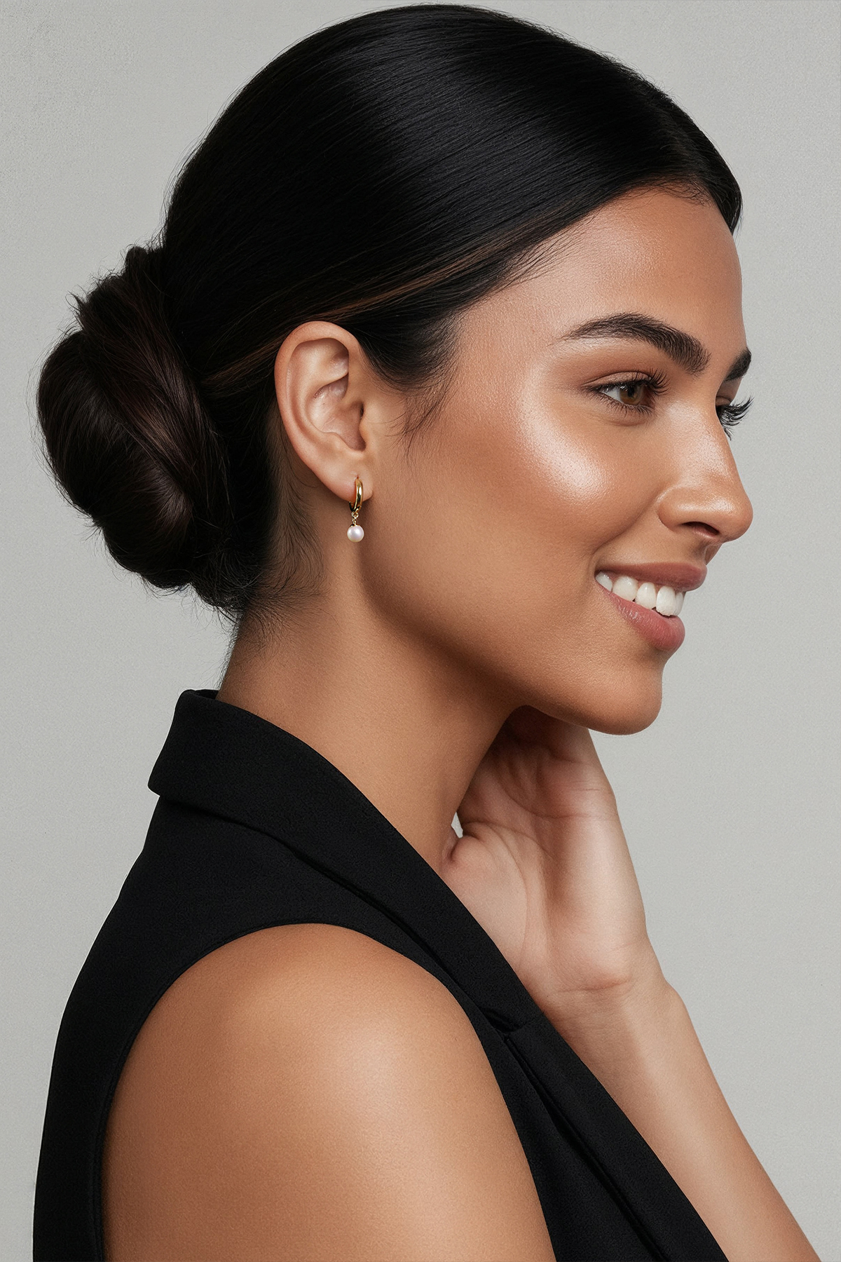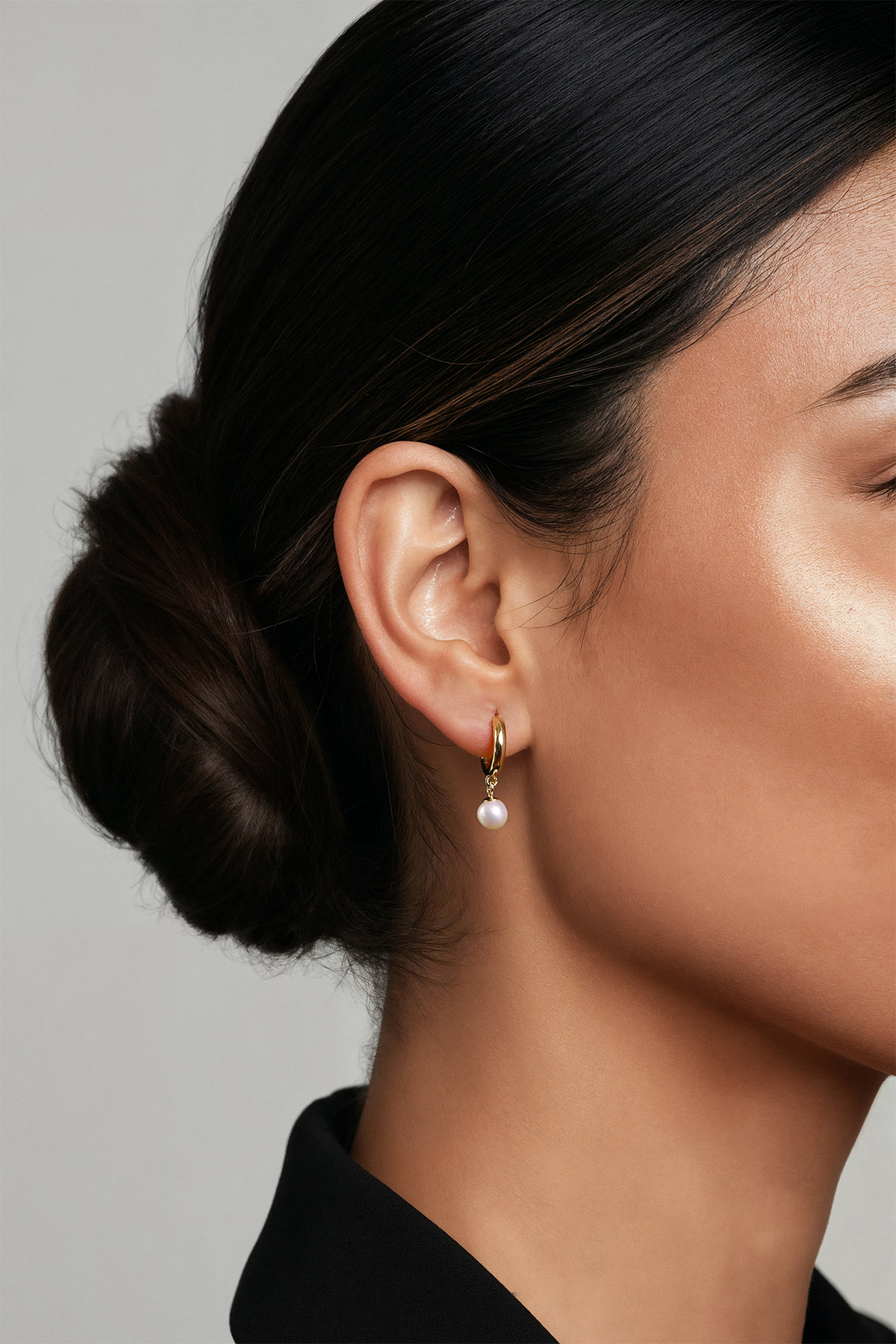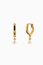 Cercei din argint Manissi Round Pearl Drop Gold placati cu aur galben de 18K, placare standard de 0.6 microni. Perla este naturala de cultura de apa dulce are dimenisunea de 5 mm iar cercelul are diametrul interior de 0.9 mm si grosimea de 1.1 mm