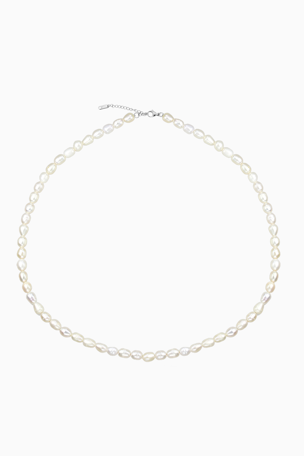 Colier cu perle naturale de cultura de 6 mm lungimea perlei. Inchizatoarea este din argint 925 placata cu rodiu, placare standard de 0.6 microni. Colierul are lungimea cu perle de 39.5 cm la care se adauga o prelungire de 3 cm. In total lungimea colierului cu inchizatoare este de 43.5 cm.