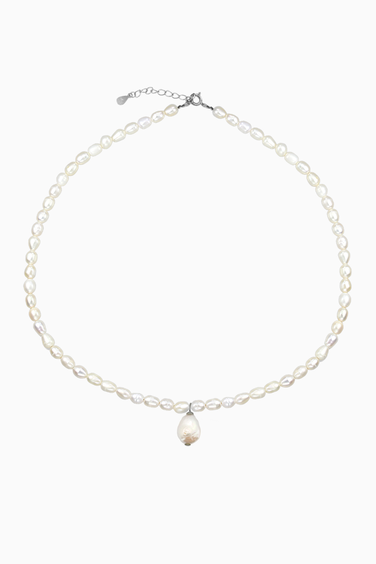 Colier perle de cultura cu pandantiv perla de 1.2 cm Silver cu inchidere si prelungire din lant, material argint 925. Colierul are lungimea cu perle de 38 cm si prelungirea din argint placat cu rodiu de 3.5 cm, inchiderea este lobster oval din argint.