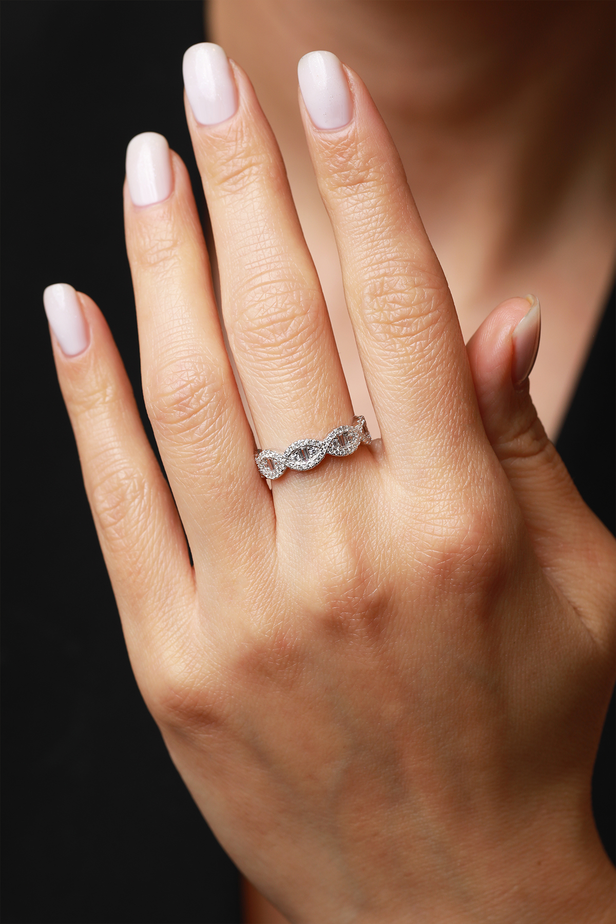 Inel din argint Manissi Zirconia Infinity placat cu rodiu, placare standard de 0.6 microni. Inelul este prevazut cu pietre zirconiu transparente.