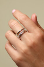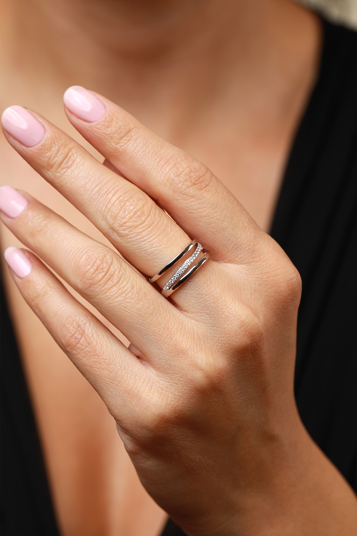 Inel din argint Manissi Zirconia Lines placat cu rodiu, placare standard de 0.6 microni. Latimea inelului este de 8 mm si nu poate fi ajustat. Marimea este standard. Pietrele sunt zirconia.