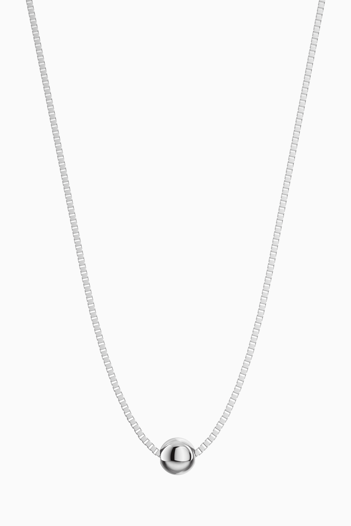 Lant din argint Manissi Small Ball placat cu rodiu, placare standard de 0,6 microni. Lant simplu model box de 33 de cm cu prelungire de 8.5 cm cu pandantiv biluta mobila de 3 mm.