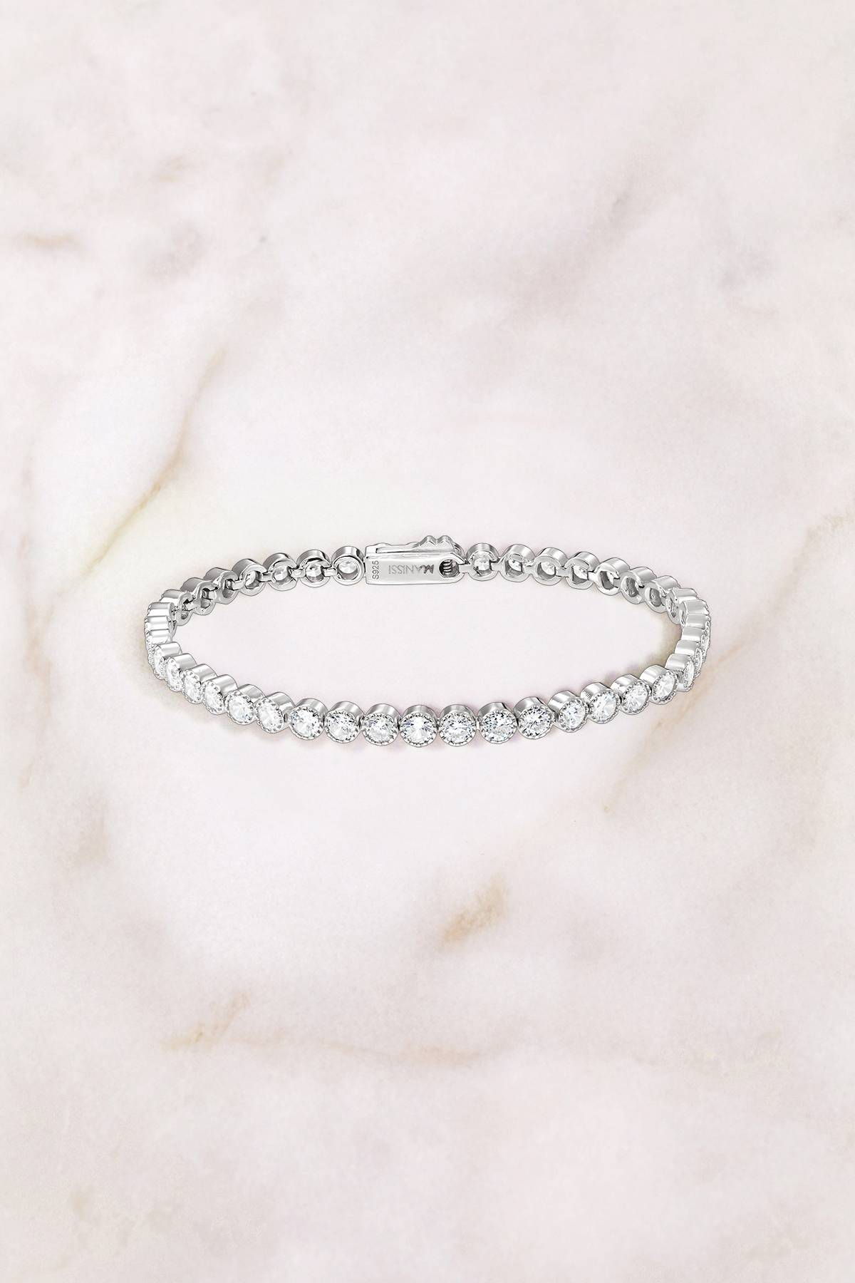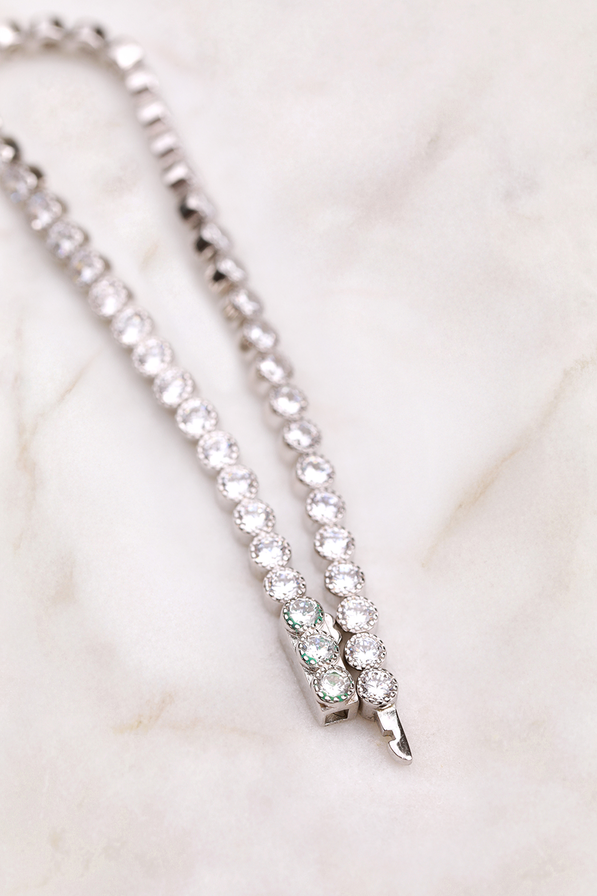Bratara din argint Manissi tennis 3 mm Round cu pietre individuale rotunde incastrate placata cu rodiu, placare standard de 0.6 microni. Bratara are lungimea cu inchizatoare de 16.5 cm iar inchiderea se face prin apasare pe buton. Pietrele sunt asezate manual, iar sistemul de prindere al carcaselor este ascuns.