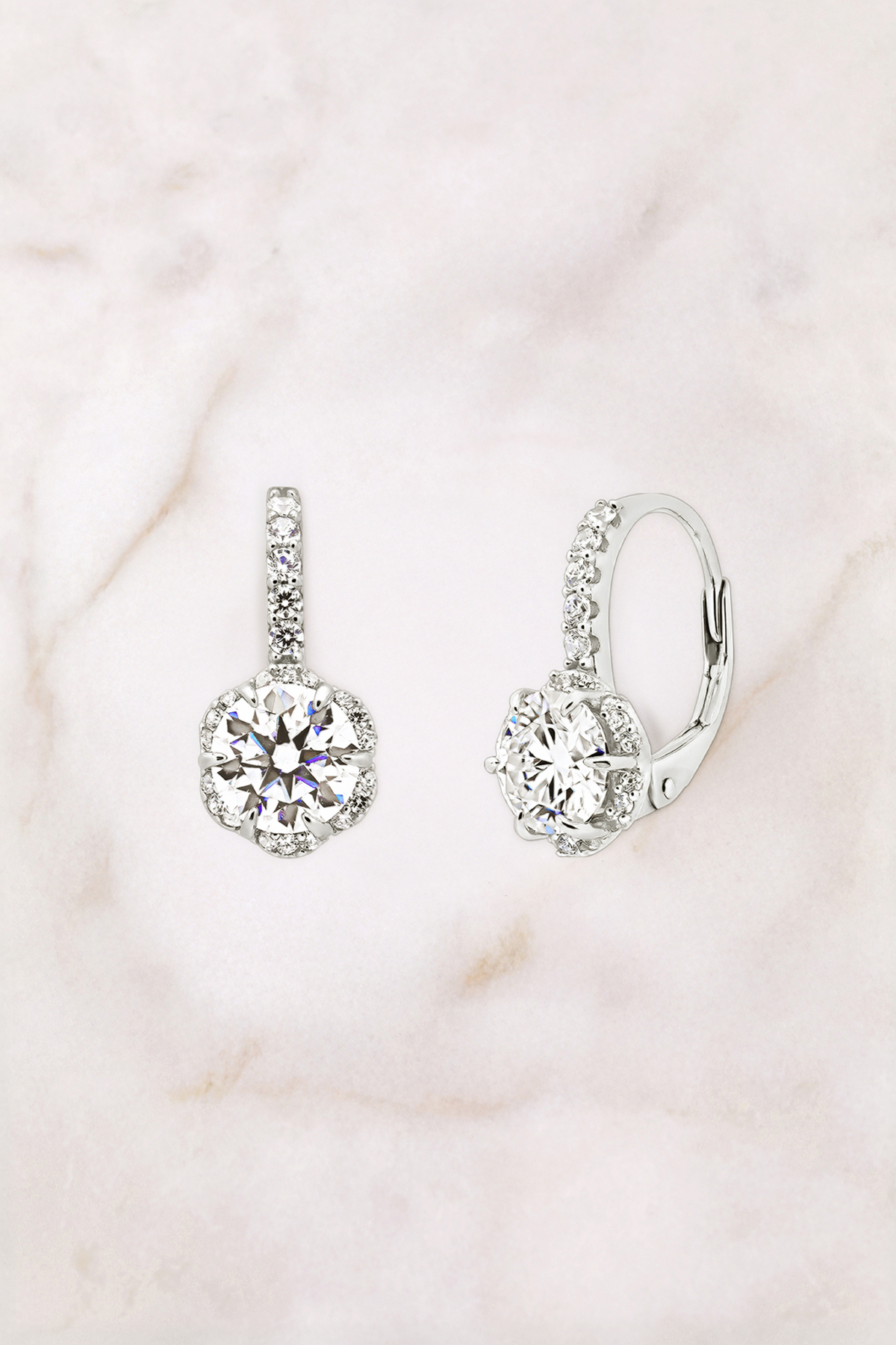 Oops Cercei din argint Manissi Diamond Agnes Hoops. Piatra este diamant moissanite de 6.5 mm, 1.00 carat, culoare D, claritate VVS1, taietura excelenta rotunda. Vezi detalii produs aici.