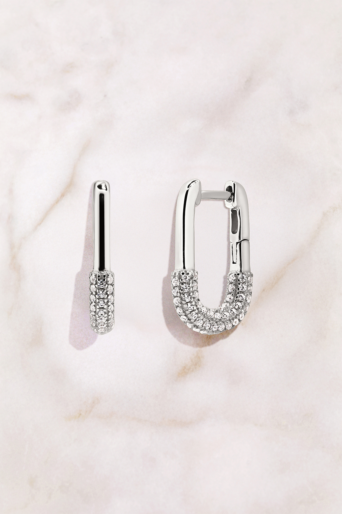 Cercei din argint Manissi Oval Half Zirconia placati cu rodiu, placare standard de 0.6 microni. Inaltimea cerceilor este de 1.8 cm.