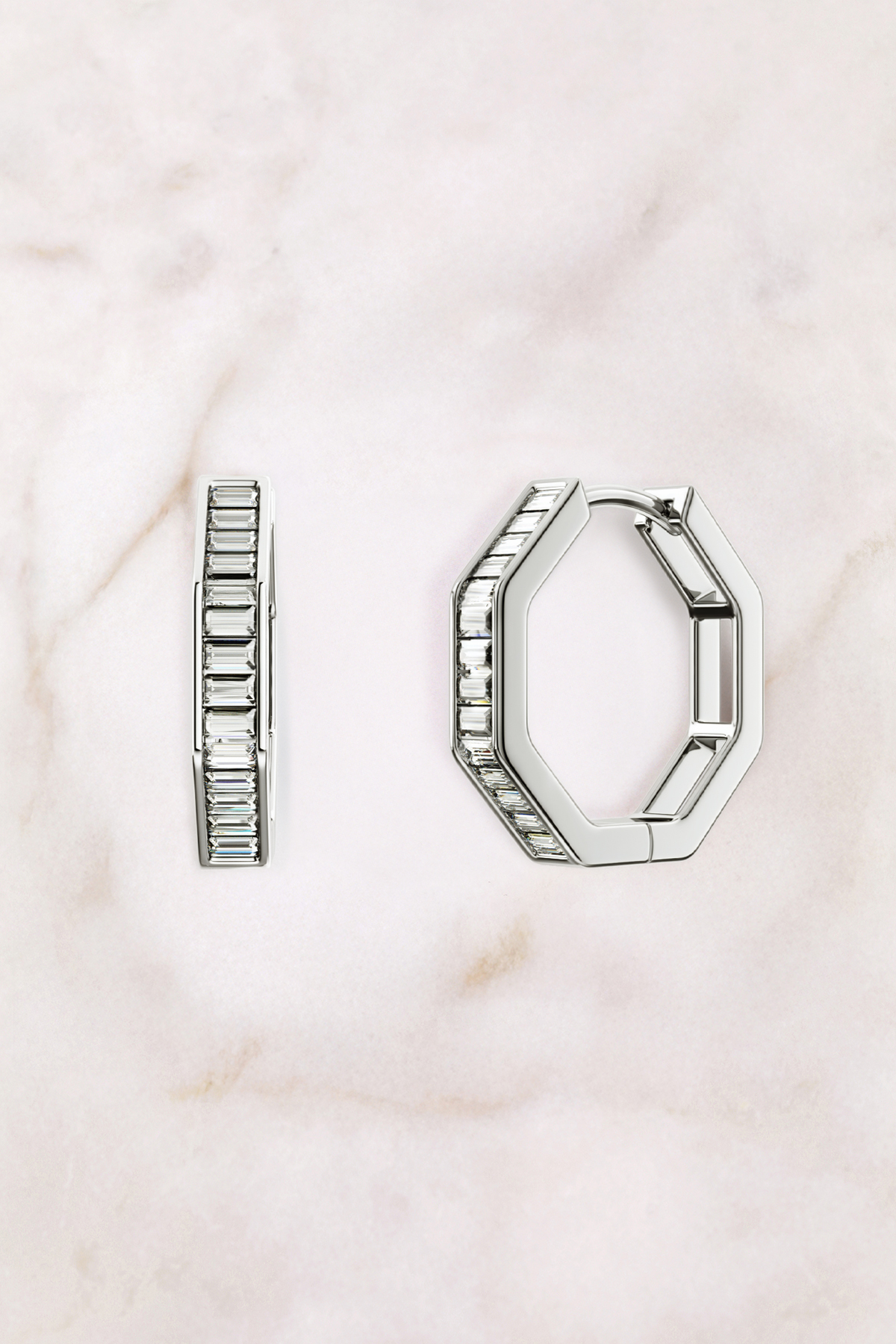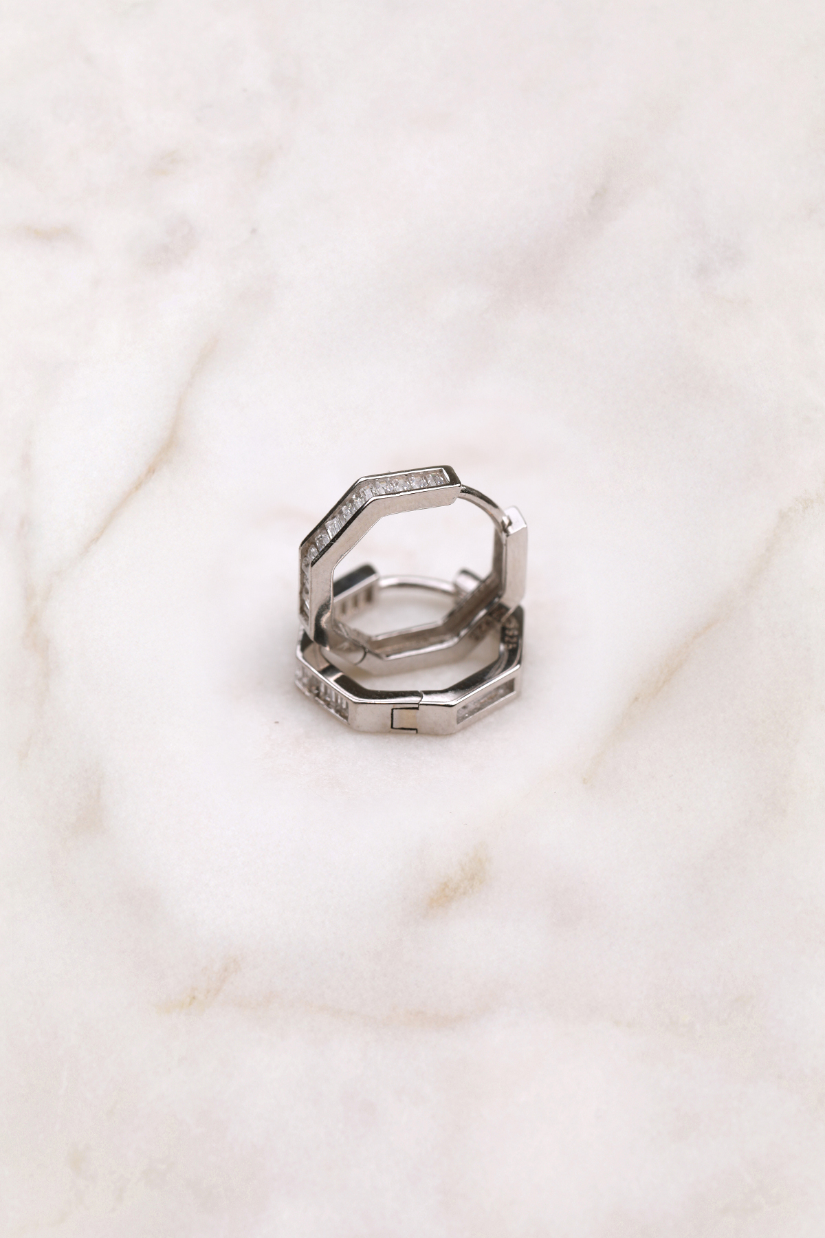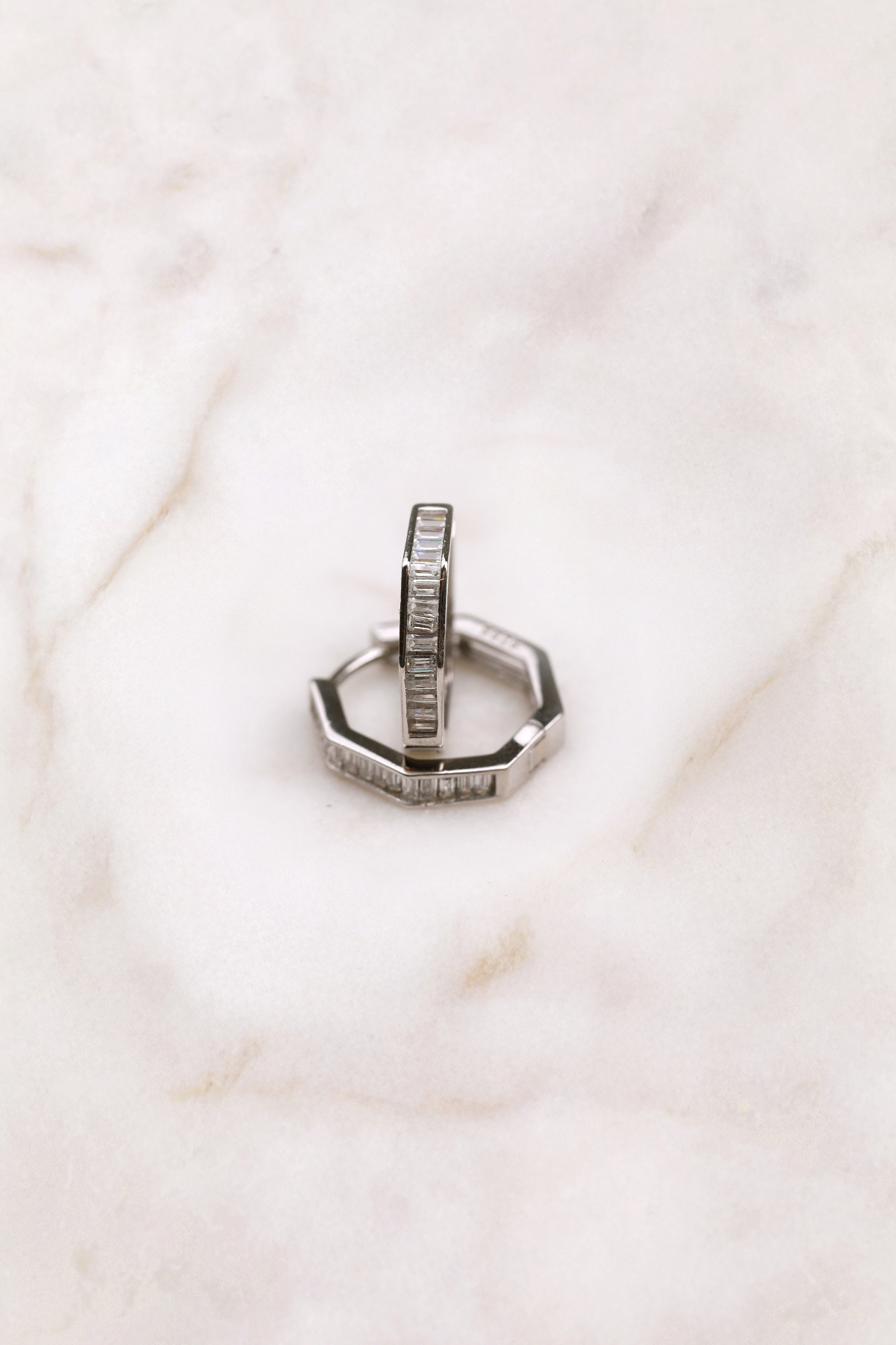 Oops Cercei din argint Manissi Tennis Octagon placati cu rodiu. Diametrul intern este de 1.2 cm. Vezi detalii produs aici.