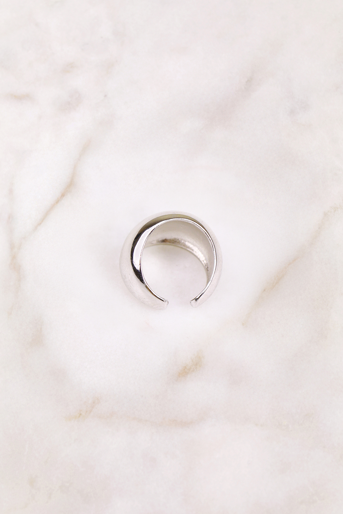 Cercel din arginr Ear Cuff Manissi Galactic placat cu rodiu. Cercelul are diametrul interior de 8 mm si latimea de 1.1 cm si se aplica pe ureche.