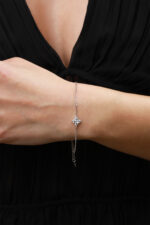 Set compus din bratara si cercei din argint Manissi Diamond Four Leaf Clover. Lungimea bratarii este de 17 cm la care se adauga o prelungire din lant de 5 cm.
