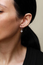 Cerceii au inaltimea de 2,2 cm si diametrul de 1 cm. Pietrele sunt Moissanite de 3.0 mm, 0.1 carate per piatra, culoare D, claritate VVS1, taietura excelenta.