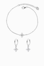 Set Bratara si Cercei din argint Manissi Diamond Four Leaf Clover